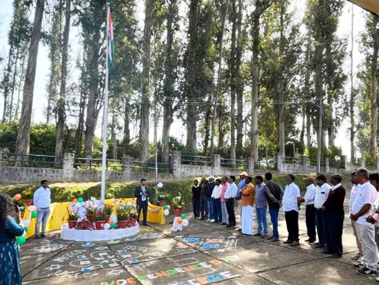 CAR-Indian Institute of Soil and Water Conservation, Research Centre, Ooty has celebrated the 77th Independence Day with great fervour and zeal on 15th August, 2023. The event commenced with the unfurling of the National flag by Dr Somasundaram Jayaraman, Head of the Centre followed by playing of the National Anthem. Thereafter the Head of the Centre addressed the gathering and requested all the staff members to give their best contribution for the overall development of the Research Centre and the IISWC, Dehradun.