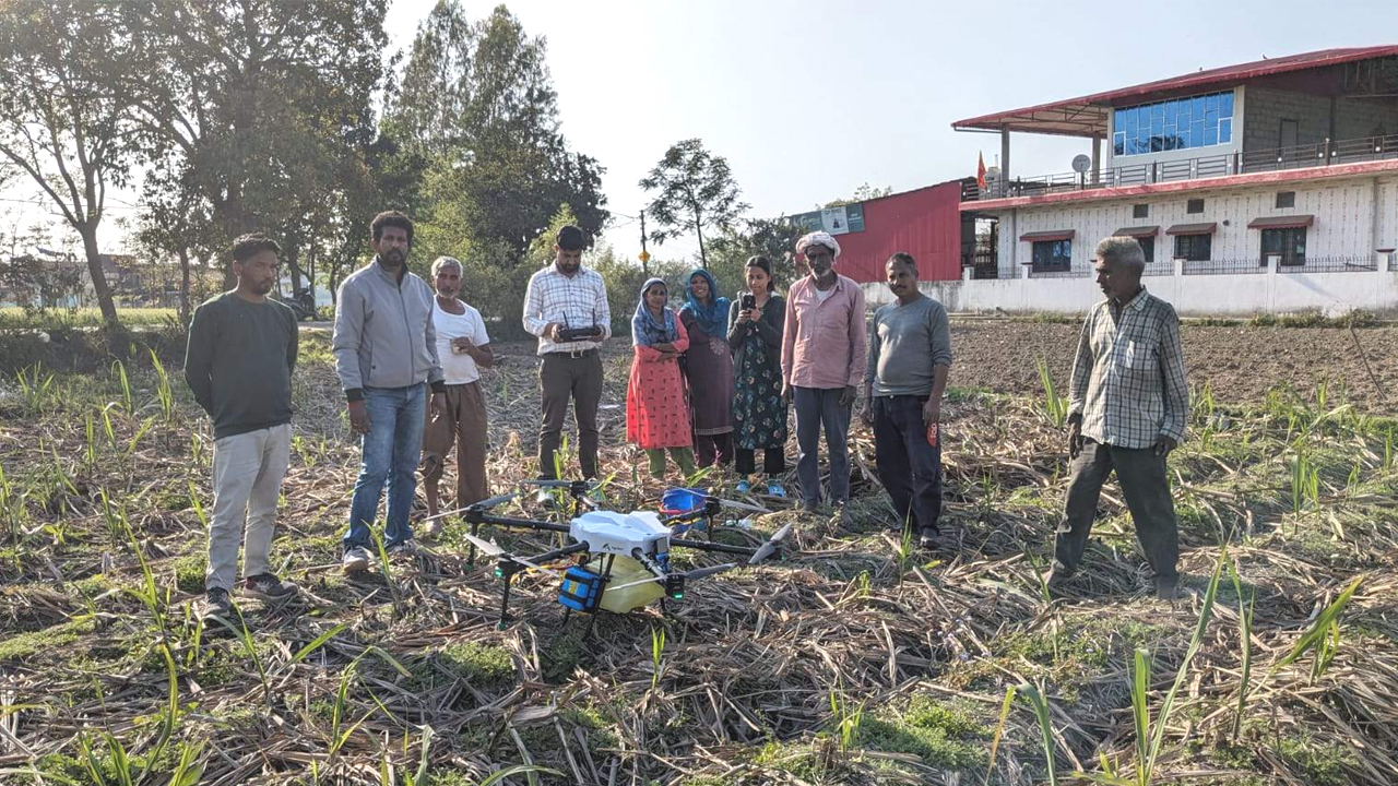 Farmer Sh. Bhagat Ram shared his views with agricultural drones in his fields.. Under this campaign, 50 agri drone demonstrations will be conducted in various villages of Dehradun over 5 days. As part of this, today, 10 demonstrations were conducted among farmers in 6 villages in the Vikas Nagar area and about 50 farmers benefitted.