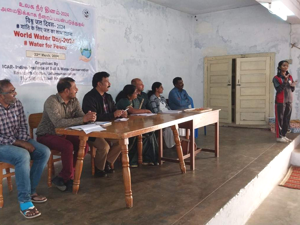 ICAR-Indian Institute of Soil and Water Conservation (IISWC), Research Centre, Udhagamandalam celebrated World Water Day- 2024 with the theme # Water for Peace at the Gell Memorial School, Fernhill, Ooty, The Nilgiris, Tamil Nadu on Friday, March 22, 2024. The program was organized to create awareness on conservation of water and natural resources to make water a catalyst for a more peaceful world among the young minds. The programme was attended by 80 students from the Class-IX and the scientists and technical personal of the Research Centre. During the programme, Dr. Somasundaram Jayaraman, Head & Principal Scientist, ICAR-IISWC, Research Centre, Ooty sensitized the students on the various water conservation technologies and inspired them to take the measures to save the water for the posterity. Following to this all Scientists of the Centre interacted with the students and created awareness about the importance of water and its conservation. An elocution competition was conducted on the theme topic “Water for peace” in which 10 students had participated. At the valedictory function, the winners were awarded with the prizes by the Head of the Centre and other delegates. The programme was ended with a message of Action for water is action for peace. All the staff of the centre actively participated in the event. The program was coordinated by Dr. Sudheer Kumar Annepu, Scientist and Er. Blessy V.A, Scientist.