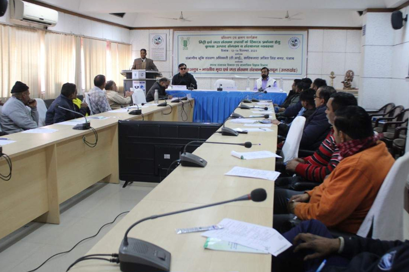 Training programme on “FPOs Formation and Institutional Arrangements for Sustainable Management of SWC Interventions” was organized during 12-14 December 2023 for 25 farmers from 10 different villages of Pathankot district of Punjab. This training was sponsored by Divisional Soil Conservation Officer (Training Institute), SAS Nagar, Mohali, Punjab. The training was aimed at to enhance the knowledge of Officers/ Farmers/ User Groups on formation of FPOs so as to enhance the income of farming community and creation of community institutions for sustainable management of soil and water conservation interventions.