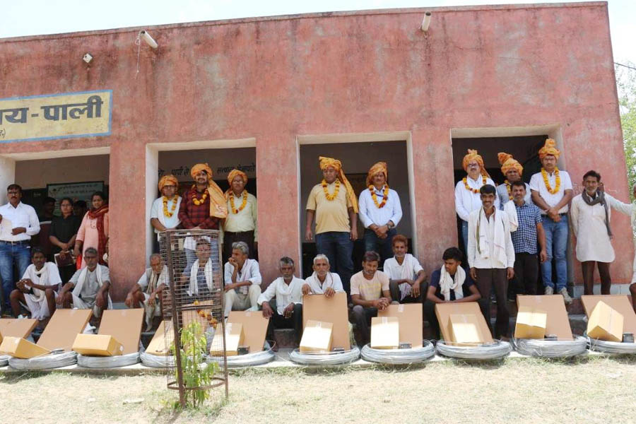 On 14th April, 2023, the Director along with the team of scientists and technical personnels made a visit to the TSP and SCSP villages at Pali and Kareeria villages of Bundi district, respectively. In SCSP village, he monitored the soil and water conservation works including bunding and inter-bunding levelling, spillway and check dams being constructed by the Centre for resource poor farmers of the village. He appreciated the efforts being made by the Team Kota for ongoing work of irrigation facilities being undertaken in the marginal lands of the poor communities. On this occasion, a meeting of farmers was also organized to know about the demands of the farmers of the village. In this meeting, solar fencing to 13 groups of farmers of the SCSP village for protection of crop from wild life was distributed by the Director.