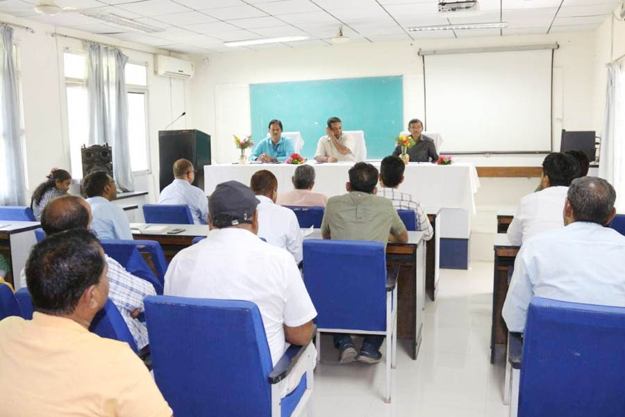Dr M. Madhu, Director, ICAR-IISWC, Dehradun visited Research Centre, Kota during April, 13-14, 2023 for monitoring research and development activities being carried out at the Centre. He was accompanied by Shri S.K. Gajmoti, CAO (SG), and Shri Pramod Kumar, Technical Officer from Head Quarters. On 13th April, 2023 (FN), the Director and his team members got acquainted with the repair & maintenance, and renovation of drinking water facilities for office and residential premises of the Centre. In the afternoon session, an interaction meeting was chaired by the Director with all the staffs and contractual workers of the Centre. He reviewed the progress of actions assigned in his last visit to the Centre in July, 2022.