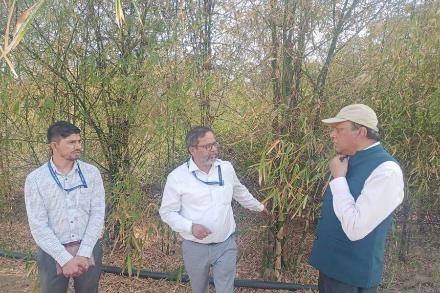 Dr SK Chaudhary, Hon’ble DDG (NRM) Visited ICAR – IISWC RC, Datia on 07/04/2023. Dr A Arunachalam, Director, ICAR – CAFRI, Jhansi also accompanied Hon’ble DDG. Hon’ble DDG was given warm welcome by all the staff of the research centre followed by tree plantation in the office campus. During the visit, he dedicated new tractor to the centre. Afterwards, he visited the research farm of the centre to have a birds’ eye view of farm resources and facilities. During farm visit, he appreciated the efforts of the centre in developing the bamboo-based bio-fence. He took keen interest in the dynamics and package of practices of the bio-fence and Dr Dinesh Kumar explained the various options to achieve the bamboo bio - wall in minimum possible time. Hon’ble DDG (NRM), Later, in interaction meeting with the scientist and staff, Dr RS Yadav, Head of the Centre, apprised him about the research projects and associated facilities. In his address, Dr A Arunachalam, Director, ICAR – CAFRI, Jhansi congratulated the centre on 70th Foundation Day of the Institute. He narrated the role of the institute research work in achieving the land degradation neutrality. In his address, Dr SK Chaudhary, Hon’ble DDG (NRM) congratulated the Institute and its Research Centres’ on the celebration of 70th Foundation Day of the Institute lauded the role of the institute to address present day and visualised problems in conservation of natural resources. He especially appreciated the centre in managing the office, office campus, residential campus, research facilities and farm with very few manpower. Lastly, Dr DM Kadam extended vote of thanks to the Chair, Director, ICAR – CAFRI, Jhansi and all the staff to make the visit a grand success.