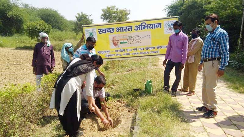 भाकृअनुप-भारतीय मृदा एवं जल संरक्षण संस्थान, अनुसंधान केंद्र, आगरा पर दिनांक अक्टूबर 02, 2020 को 150वीं गांधी जयंती पर वृक्षारोपण कार्यक्रम का आयोजन आज केंद्र के वैज्ञानिकों एवं कर्मचारियों ने संस्थान के परिसर में वृक्षारोपण कर गांधी जयंती की शुरुआत की। इस अवसर पर वर्ष भर से चल रहे स्वच्छ भारत अभियान के अंतर्गत केंद्र पर बृहद स्तर पर साफ सफाई की गई। केंद्र के सभागार में इस अवसर पर गांधी – चिंतन पर संगोष्ठी का आयोजन किया गया। इस अवसर पर महात्मा गांधी तथा श्री लाल बहादुर शास्त्री जी के चित्रों पर मालार्पण किया गया। केंद्राध्यक्ष ने गांधी और भारतीय खेती पर अपने विचार रखे। डा॰ रमा पाल ने स्वच्छ पेय जल उपलब्धता पर विचार प्रस्तुत किये। डा॰आर॰के॰दुबे,डा॰के॰के॰शर्मातथा श्री आलोक खाण्डेवाल ने भी अपने विचार प्रस्तुत किए। इस अवसर पर श्री बी.प्रसाद ,श्री बी.पी.जोशी,श्री ए॰के॰नितांत, श्री सुरेश चंद्र, श्री नारायण सिंह, श्री शिशु पाल,श्री थान चंद शर्मा एवं अन्य उपस्थित रहे।