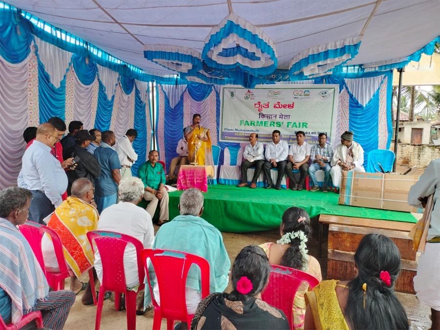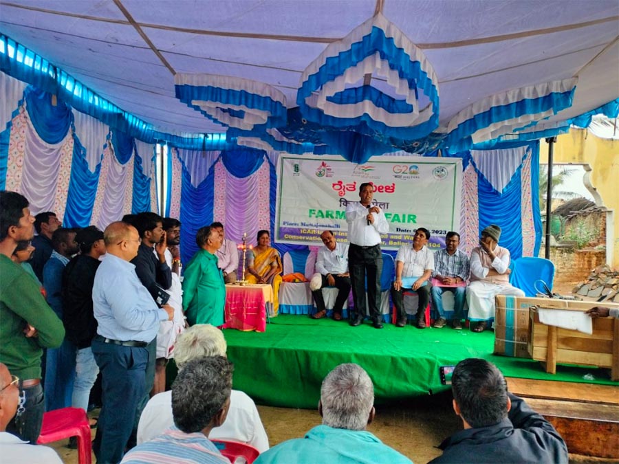 भाकृअनुप-भारतीय मृदा एवं जल संरक्षण संस्थान, अनुसंधान केंद्र, बल्लारी ने 4 सितंबर, 2023 को बल्लारी जिले के संदुर तालुक में स्थित टीएसपी के तहत गोद लिए गए मट्टाजानहल्ली गांव में एक "किसान मेला" का आयोजन किया। किसान मेले में टीएसपी और एससीएसपी गांव के 60 से अधिक किसानों ने भाग लिया। कार्यक्रम की अध्यक्षता डॉ. एम. मधु, माननीय निदेशक, भा.कृ.अनु.प - भारतीय मृदा एवं जल संरक्षण संस्थान ,देहरादून ने मुख्य अतिथि श्री ई. तुकाराम, माननीय विधायक, संदुर तालुक की उपस्थिति में की। इसके अलावा, अन्य अतिथि जैसे डॉ. गोविंदप्पा, प्रमुख, भा.कृ.अनु.प -केवीके, हगारी डॉ. रवि, वरिष्ठ वैज्ञानिक (मृदा), भा.कृ.अनु.प -केवीके, हगारी, श्री मंजूनाथ रेड्डी, सहायक कृषि निदेशक (एडीए), संदुर और कार्यक्रम में श्री थिमप्पा ग्राम प्रधान उपस्थित थे। डॉ. एम.एन. रमेशा, वैज्ञानिक (वानिकी) ने कार्यक्रम में सभी अतिथियों और कृषक प्रतिभागियों का स्वागत किया। कार्यक्रम की शुरुआत दीप प्रज्वलन और भा.कृ.अनु.प. गीत के साथ की गई। डॉ. बी.एस. नायक, प्रधान वैज्ञानिक (एसडब्ल्यूसी इंजीनियरिंग) और नोडल अधिकारी, और नोडल अधिकारी, टीएसपी और एससीएसपी परियोजना ने कार्यक्रम के बारे में जानकारी दी और आईसीएआर-आईआईएसडब्ल्यूसी, आरसी बल्लारी द्वारा एससीएसपी और टीएसपी गांव (चेलूमहल्ली और मट्टाजानहल्ली गांव) में किए गए विभिन्न हस्तक्षेपों और गतिविधियों के बारे में बताया। । डॉ. गोविंदप्पा ने सभा को संबोधित किया और किसानों को उच्च पैदावार और कृषि आय के लिए क्षेत्र के अनुकूल वर्षा आधारित फसलों, विशेष रूप से बाजरा फसलों की उन्नत किस्मों को अपनाने पर जोर दिया। श्री. मंजूनाथ रेड्डी ने भी सभा को संबोधित किया और किसानों को कृषि उद्देश्यों के लिए किसानों के लिए उपलब्ध मौजूदा सरकारी योजनाओं का उपयोग करने के लिए प्रेरित किया। निदेशक डॉ. एम. मधु ने किसान मेले के दौरान सभी किसानों और प्रतिभागियों को संबोधित किया और किसानों को खेती के लिए समर्थन जारी रखने का आश्वासन दिया और किसानों को फसल उत्पादकता और खाद्य सुरक्षा बढ़ाने के लिए मौजूदा कृषि संसाधनों के कुशल उपयोग के बारे में जानकारी दी।