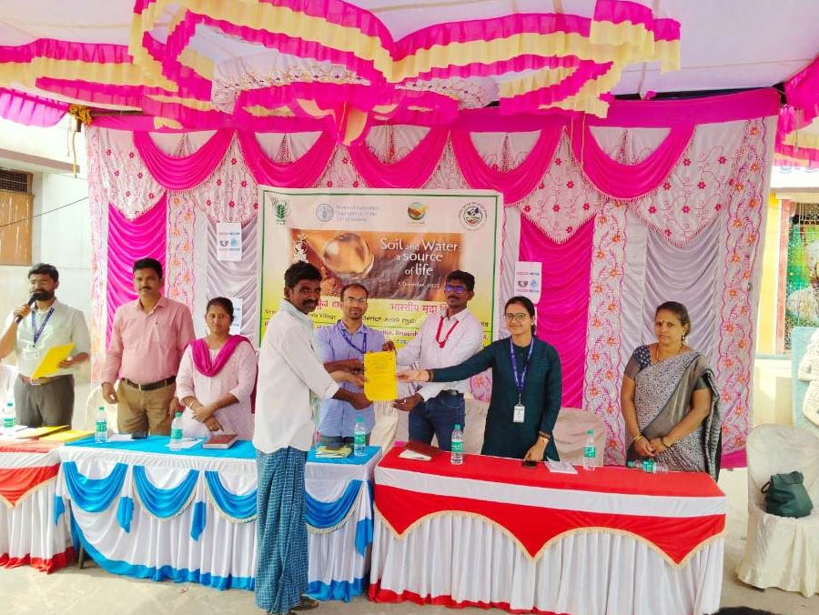 Ms. N.M. Anusha, Scientist (Fruit Science) informed about in-situ soil and moisture conservation techniques for horticultural crops. Smt. Vijaya, Head Mistress, Govt. Higher Primary School, Belagal Tanda, addressed and also requested farmers to keep their village clean and tidy. She stressed about the role of individuals with respect to development of clean village. Finally, Dr. M Prabhavathi, Senior Scientist (Soils) & Acting Head explained about the role of institute in soil and water conservation and also SCSP programme initiatives to the participating farmer in her presidential address. The soil health cards (22 Nos.) were issued to the beneficiary farmers in the village and 88 Nos. of farmers actively participated in the event. Dr. M Prabhavathi coordinated this programme with Dr. B.S. Naik and Shri. K. N. Ravi as Co-coordinators. Mr. P. Mohan Kumar, (Technical Officer), Mr. Abhishek Kumar Singh, (Technician), Mr. Nazeer Ahmed, Mr. Shivakumar and Smt. Sumalatha assisted the organizing team and disseminated the information and served food to the farmers. Scientific team of ICAR- IISWC, RC, Ballari interacted with the farmers and meeting was ended with vote of thanks proposed by Sh. Mohan Nayak, a key person of the village.