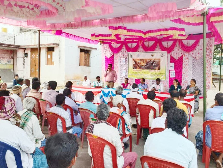 The ICAR-Indian Institute of Soil and Water Conservation, Research Centre, Ballari has celebrated World Soil Day 2023 on 05.12.2023 at SCSP village, BelagalTanda. The programme was started with welcome and introduction of the event to the Farmers by the Shri. Ravi, K.N, Scientist (Agrl. Extension). Dr. B. S. Naik, Principal Scientist (SWCE) addressed the farmers about importance of soil and water conservation measures in climate changing scenario. Dr. M. N. Ramesha, Senior Scientist (Forestry) briefed about the role of forest and trees in perpetual and perennial flow of rivulet and ground water recharge. Dr. Ravi Dupdal, Senior Scientist (Ag. Economics) briefed about soil and water management for doubling of farmer’s income. Dr. Ravi, K. N. Scientist (Agrl. Extension) briefed about preparation of organic liquid manures and its application for soil health improvement.