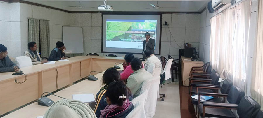 ICAR-IISWC organized a workshop on Innovative Formulations: Water Soluble Fertilizers under a public-private partnership programme on 11/01/2023 in association with Rallis India Ltd. The programme was hosted by the ASSRF Dehradun unit (Dr. D. Mandal-President, Dr. Trisha Roy-Secretary, and Dr. Devideen Yadav- Treasurer). Dr. Subhendu Bhadra Ray, Advisor, Rallis India Ltd and Dr. Malti and Dr. Sanjay Naithani from Tata chemicals were the special invitees. The programme started with the warm welcome of the guests by Honorable Director, ICAR-IISWC, Dr. M. Madhu. Thereafter, Dr. D. Mandal highlighted the importance of the programme for scientific research as well as for public welfare.