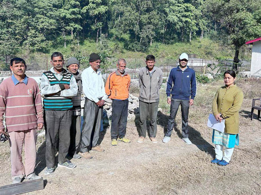 A Scientists-Farmers Interface meeting and Focused Group Discussion were organized at Village Kalimati, Raipur block, Dehradun on 27th Dec. 2022 under ICAR-NIAP collaboration project “Impact of Agricultural Technology: Impact of Watershed Management in Different Agro-Ecological Regions”. The team of Dr. Indu Rawat, Sr. Scientist, Dr. Abimanyu Jhajhria, Scientist and Mr. Dharmpal (Technician) coordinated the programme at the village. The team interacted with the farmer beneficiaries of the village where ICAR-IISWC implemented various interventions related to soil and water conservation under Institute Village Linkage Programme (IVLP). Through this programme, a sub-surface water harvesting tank was designed and constructed at the village site to store the natural spring water. The farmers shared their excellent experiences after these interventions and apprised that they have been befitted a lot after getting water for farming. The water harvesting structure is functioning very well at present also and it is managed through water user association.