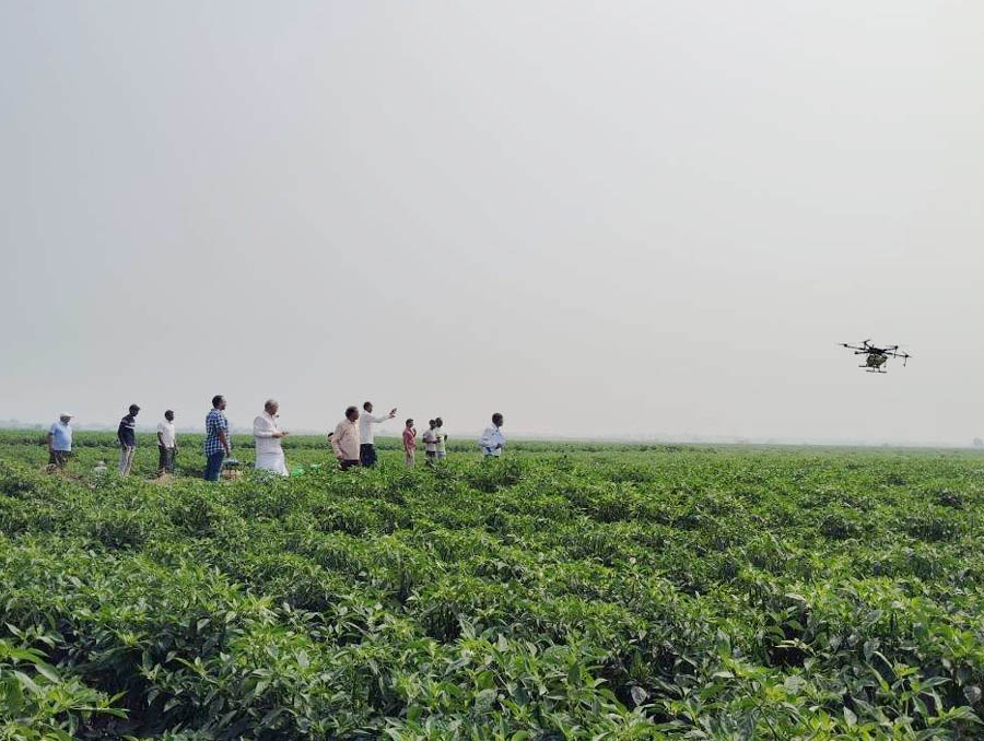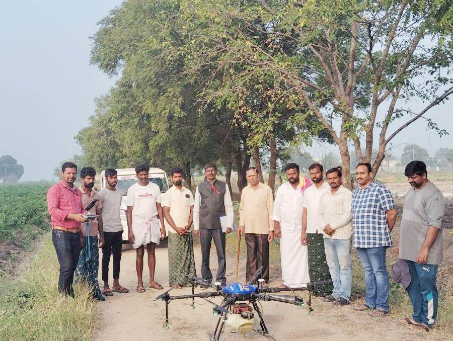 इस तीन दिवसीय अभियान में लक्ष्मी नगर कैंप, कोलुरु, कोलागल्लू और सोमसमुद्र गांवों के लगभग नब्बे किसानों ने भाग लिया। बारह भूखंडों पर प्रदर्शन किया गया और लगभग 42 एकड़ मिर्च की फसल पर पौधों की सुरक्षा और विकास को बढ़ावा देने वाले रसायनों का छिड़काव किया गया। लगभग 6 एकड़ रबी ज्वार और एक एकड़ अरहर की फसल पर भी पौध संरक्षण रसायनों का छिड़काव किया गया। ड्रोन को एक एकड़ क्षेत्र में स्प्रे करने के लिए 10 मिनट की आवश्यकता होती है और केवल 12 लीटर घोल का उपयोग किया जाता है। इस प्रकार यह फसलों पर रसायनों को लागू करने के लिए आवश्यक श्रम और समय की बहुत बचत करता है। ड्रोन स्प्रे फसलों पर परिशुद्धता में केंद्रित रसायन लागू करता है। भाग लेने वाले किसान अधिक क्षेत्र को कवर करने की मांग कर रहे थे और गांवों में मिर्च की फसल के बड़े क्षेत्रों के छिड़काव के लिए ड्रोन किराए पर लेने के लिए अत्यधिक प्रेरित हैं। कई प्रतिभागी किसानों ने ड्रोन की कीमत व उसके संचालन के बारे में पूछताछ की और केंद्र से इस संबंध में प्रशिक्षण दिलवाने का आग्रह किया । यह कार्यक्रम भाकृअनुप -कृषि प्रौद्योगिकी अनुप्रयोग अनुसंधान संस्थान (ATARI), लुधियाना द्वारा वित्त पोषित राष्ट्रीय कृषि-ड्रोन परियोजना के तहत आयोजित किया गया था।