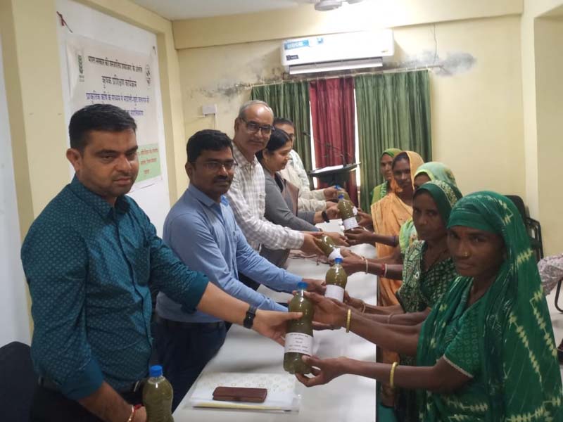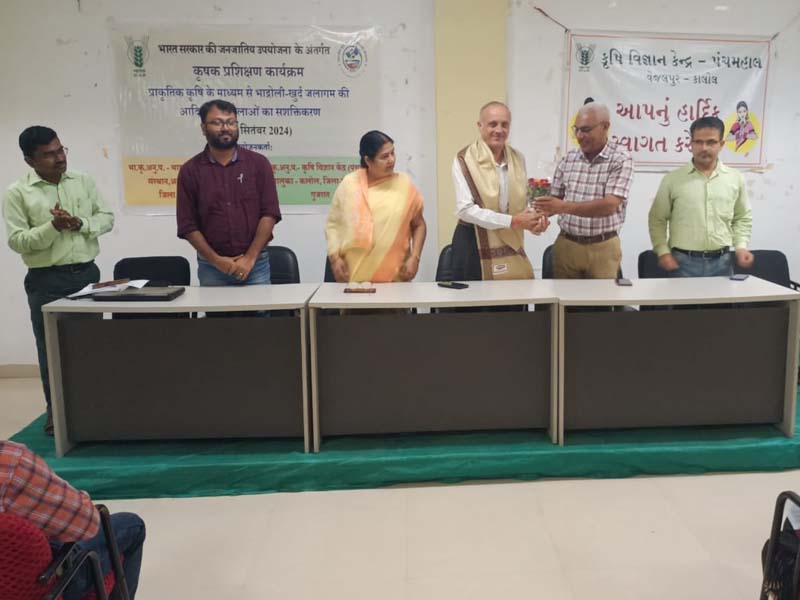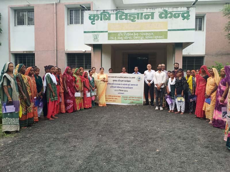 भाकृअनुप-भारतीय मृदा एवं जल संरक्षण संस्थान, अनुसंधान केंद्र, वासद ने 11-13 सितंबर, 2024 तक भाकृअनुप-- कृषि विज्ञान केंद्र, पंचमहल में पंचमहल जिले के लिए जनजातीय उपयोजना (टीएसपी) के तहत "प्राकृतिक कृषि पद्धति कौशल द्वारा आदिवासी महिला सशक्तिकरण " पर तीन दिवसीय प्रशिक्षण कार्यक्रम का आयोजन किया। कार्यक्रम का उद्घाटन प्रो. आर. सुब्बैया, प्राचार्य एवं डीन, कृषि इंजीनियरिंग एवं प्रौद्योगिकी महाविद्यालय, एएयू, गोधरा ने किया। अपने मुख्य अतिथि के संबोधन में, डॉ. आर सुब्बैया ने जलवायु परिवर्तन परिदृश्यों के तहत मिट्टी और जल संरक्षण उपायों और प्राकृतिक खेती प्रथाओं के संयोजन के महत्व पर जोर दिया। डॉ. ए.के. सिंह, प्रधान वैज्ञानिक और केंद्र के पूर्व प्रमुख (ए) ने कहा कि विभिन्न आयु समूहों के प्रतिभागियों को प्रशिक्षित करने की आवश्यकता है ताकि प्रशिक्षण का प्रभाव लंबे समय तक बना रहे। 40 प्रतिभागियों को तीन दिनों के दौरान जीवामृत, घन जीवामृतम, नीमास्त्र और ब्रह्मास्त्र जैसी प्राकृतिक कृषि पद्धतियों के बारे में प्रशिक्षित किया गया। वासद के वैज्ञानिकों की टीम (डॉ. गौरव सिंह और डॉ. नंद कुमार एन.), कृषि विज्ञान केंद्र, पंचमहल की प्रमुख डॉ. कनक लता और उनकी टीम (डॉ. शक्ति खजूरिया, डॉ. जे.के. जादव, श्री अभिषेक कुमार और श्री. वाई.एन.जादव) ने कार्यक्रम के सफल आयोजन में सहयोग रहा। डॉ. एम.जे. कलेढोणकर, केंद्राध्यक्ष, भाकृअनुप-भारतीय मृदा एवं जल संरक्षण संस्थान, अनुसंधान केन्द्र, वासद समापन समारोह के मुख्य अतिथि थे और उन्होंने प्रतिभागियों को प्राकृतिक खेती के लाभों के बारे में जानकारी दी। नीमास्त्र से भरी बोतलें आदिवासी महिला किसानों को वितरित की गईं। डॉ. डी. दिनेश ने इस प्रशिक्षण कार्यक्रम के पाठ्यक्रम समन्वयक के रूप में कार्य किया।
