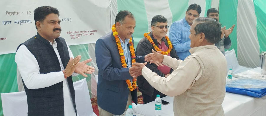 ICAR-IISWC, Dehradun organized Farmer Field School at village Manduwala, Distt. Saharanpur, Uttar Pradesh in collaboration with ICAR – CIRC, Meerut under SCSP scheme of ICAR on 13th Feb. 2023. The brief about the programme was explained by Dr. D V Singh PI, SCSP and Head, HRD & SS Division. The programme was jointly organized by ICAR – IISWC Dehradun and ICAR – CIRC, Meerut. A team of Scientists; Dr. S K Verma, Pr. Scientist, Dr. Rajeev Ranjan, Sr Scientist and Dr. S. Mahajan, Scientist were present from ICAR-CIRC, Meerut. They apprised the farmers about nutrient rich animal feed, various animal health issues, their diseases and their management. They also distributed various inputs like milking bucket, animal feed mixture, canvas, deworming medicine etc among farmers.