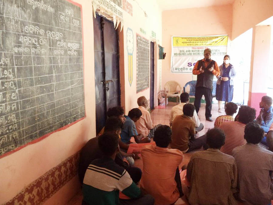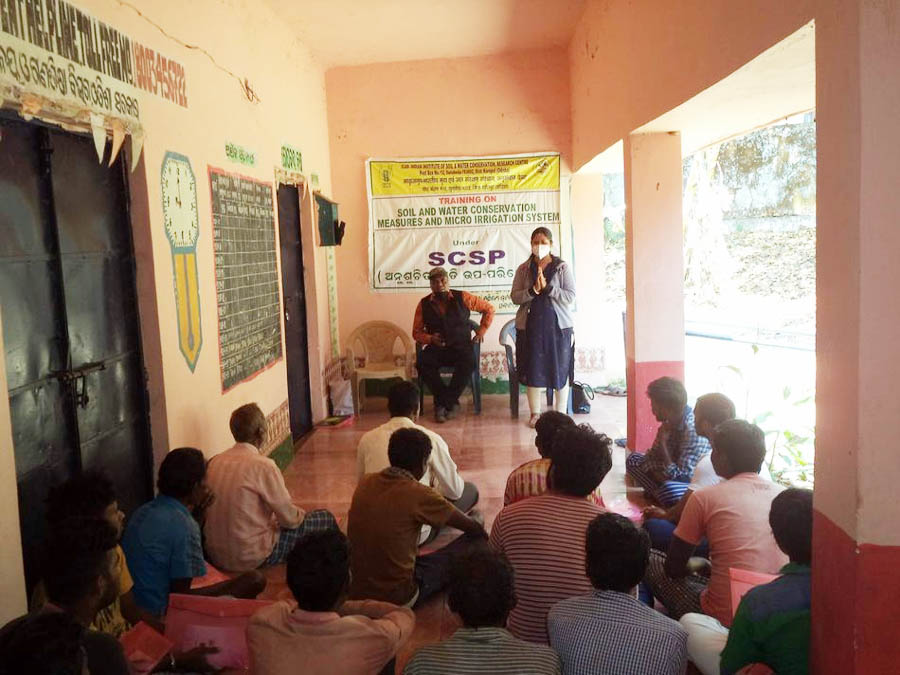 ICAR- IISWC, RC, Sunabeda, Koraput organized one day training-cum- awareness programme on “Soil and water conservation measure and micro irrigation system” under SCSP at Banpadar, Koraput district on 24.02.2021.. A total of about 28 participants were participated in this programme. The programme was coordinated by Dr. Jotirmayee Lenka, Scientist and Sh. G.B Naik, Senior Technical Officer. The training programme was focused on the areas viz. Orchard Establishment and after care, Vermicompost, Mushroom Cultivation, Conservation of horticulture and Agriculture allied activities with conservation aspect.At the end, farmers expressed their sincere thanks to team ICAR- IISWC for organizing training at their village and assured their cooperation for successful implementation of different activities as a group in their village. The programme was concluded with vote of thanks by Sh. G.B Naik.