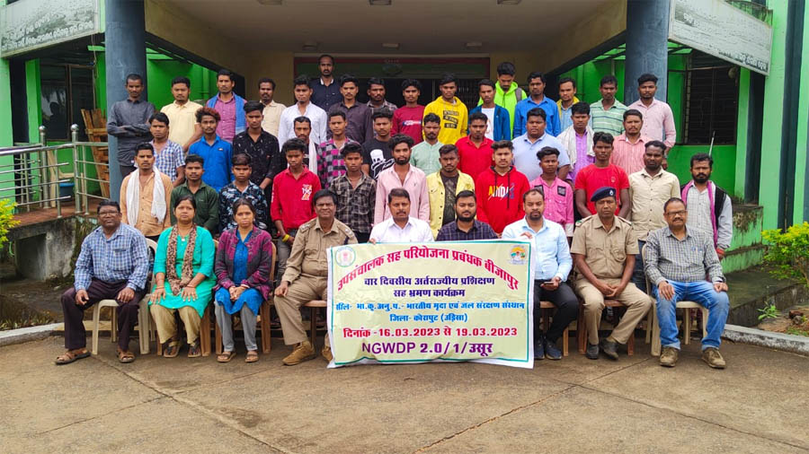 ICAR-IISWC, RC, Koraput organized four days training cum field visit of Watershed Development Team members from Usoor block of Bijapur District, Chhattisgarh under PMKSY – WDC 2.0, New Generation Watershed Development Programme (NGWDP) from 16th March – 19th March, 2023. A total 50 participants comprising Watershed Development Team members, technical officials and progressive tribal farmers were participated in the training programme. During inauguration programme, Dr. Jotirmayee Lenka, Scientist (Fruit Science) welcomed all the dignitaries including watershed development team members and staff of the centre.