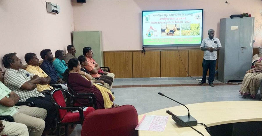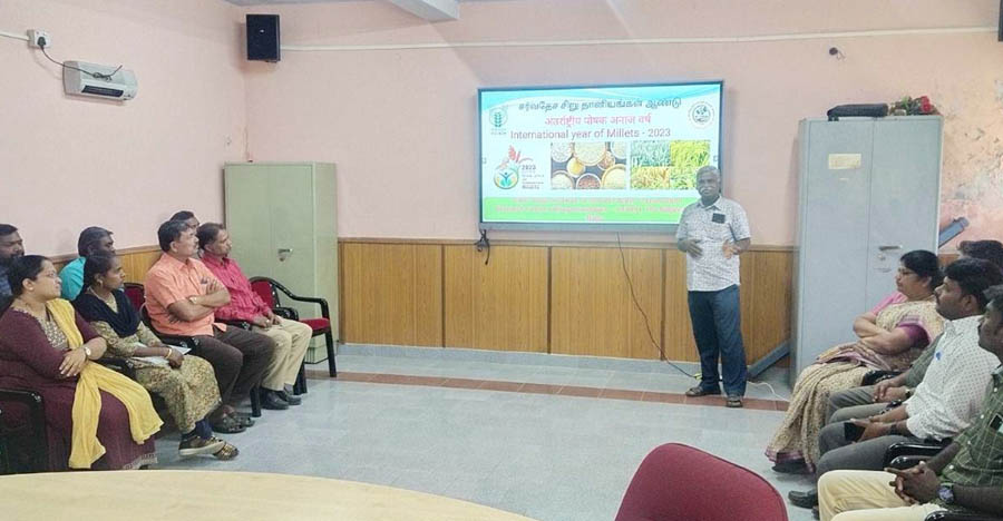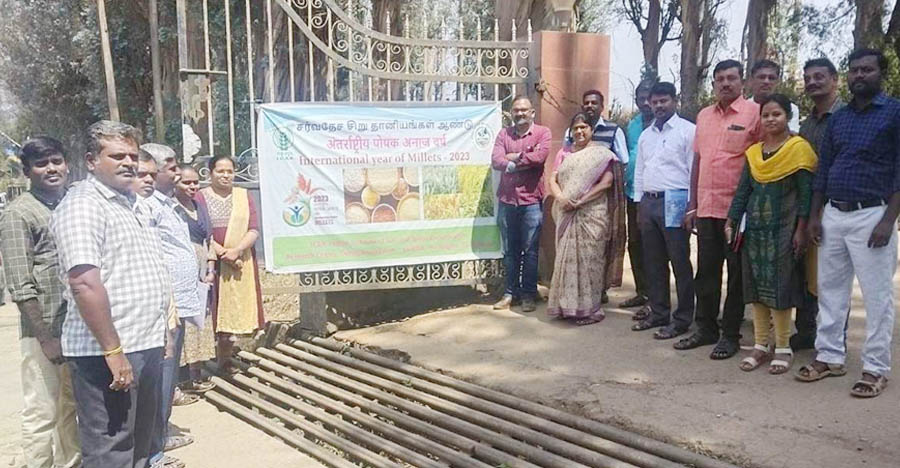 Under International Year of Millets programme celebration ICAR-Indian Institute of Soil and Water Conservation, Research Centre, Udhagamandalam organized an awareness programme on “Importance of millets, role in resource conservation and different value added products in the market” on 15-03-2023. Around 20 WDT members from Thoothukudi district, Tamil Nadu participated in the programme. Dr. P. Sundarambal, Principal Scientist and Head of the Centre, IISWC, RC, Udhagamandalam briefed about the importance of millets cultivation under the changing climatic scenario and their role in resource conservation. Dr. S. M. Vanitha, Senior Scientist, explained about the benefits of including millets in the diet and different types of millets value added products available in the market. Dr. Sudheer Kumar Annepu, Scientist, briefed about the need for promoting millets area, and production through natural farming and their consumption. Dr. Edison, training organizer, COODU trust , Thoothukudi also spoke about different varieties of Barnyard millet and preparation of various recipes. The programme ended by a formal vote of thanks.