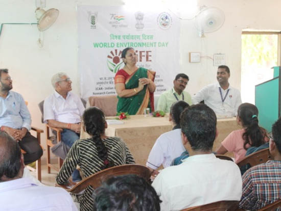 On 05/06/2023, ICAR-IISWC, Research centre, Vasad Celebrated World Environment Day at Research Farm. Under SCSP -2023 activities, Centre was organizing various events from 2nd week of May 2023 onward to achieve Mission Lifestyles for environment Awareness, at SCSP, TSP watershed and MGMG villages. In the continuation, Today’s programme Dr. Dinesh Jinger, Scientist (Agronomy), briefed about theme of the Environment Day and Mission Lifestyles for Awareness- focusing change in demand by nudging the individuals, communities and institutes to practice simple eco-friendly activities in their daily lives.