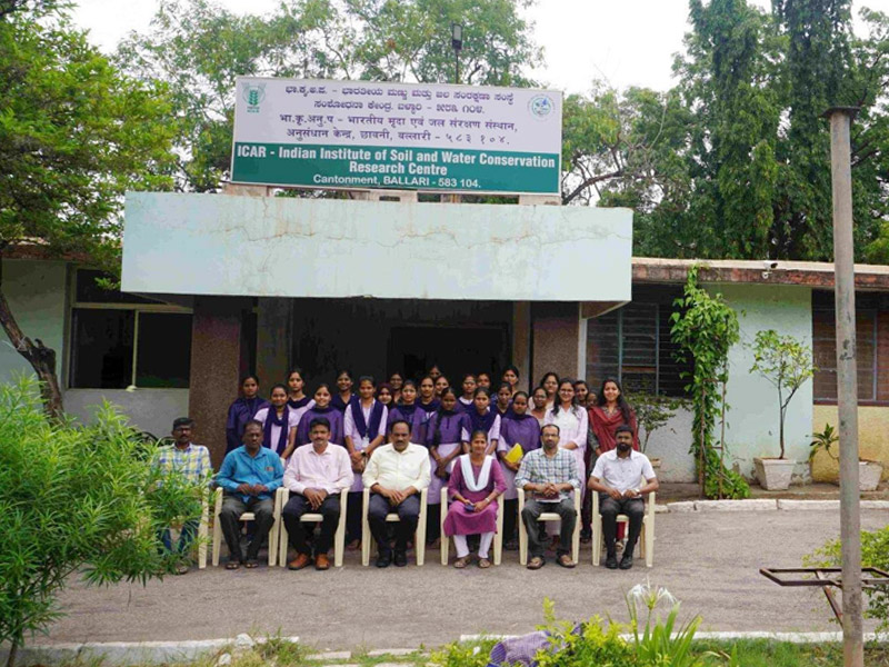 ICAR-IISWC, Research Centre, Ballari organized 15 day internship programme on “Short-course on Soil and Water conservation Techniques for sustainable Natural Resource Management” from 30.07.2024 to 13.08.2024 to group of 24 women B.Sc. (Final Year) students from Smt. Allum Sumangalamma memorial college for Women, Ballari. The programme was inaugurated by Dr. B Krishna Rao, Head, ICAR-IISWC, RC, Ballari and attended by Mr. Md. Yunub Basha., Sr. Lecture and Ms. Sushmitha , Lecture from the college. During the inauguration students were sensitized about the major research and extension activities conducted by our centre and also brief about short-course modules of the internship programme. Speaking with the students Dr. B Krishna Rao, Head of Centre, asked all the students to actively involve in practical classes during training to get practical experiential learning on various Soil and Water conservation Techniques and other improved soil health practices. During the programme Centers scientists viz., Dr. B S Naik., Dr. Ramesha, M N., Dr. Prabhavathi, M., Dr, Ravi Dupdal, Dr. Anusha N M, and Mr. Ravi K N were present.