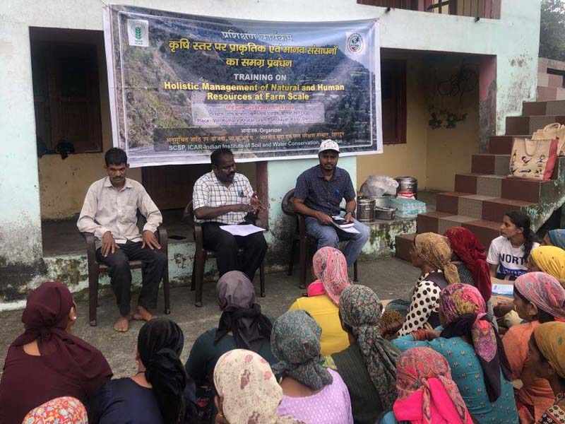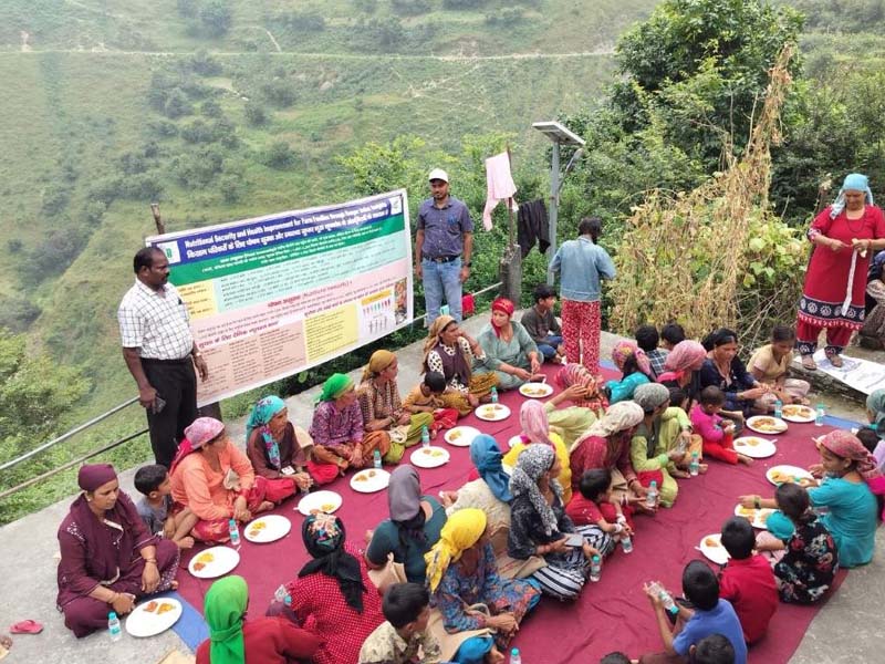 ICAR-Indian Institute of Soil and Water Conservation (IISWC) , Dehradun organized a field training programme on “Nutritional Security and Agriculture Family Health” at Khatar Village on 25 September 2024. The training aligns with the Global Development Goals (GDGs) 2.0, which aim to improve food security and nutrition outcomes. Dr. M. Muruganandam , Head and Principal Scientist, PME & KM Unit, IISWC, emphasized the importance of diverse food intake for maintaining proper physiological function and health. He highlighted the need for diversifying crop production and monitored intake of different foods to achieve balanced nutrition and food security. Dr. Muruganandam also underlined the important role of women in maintaining family health and explained that dietary choices impact the health, prosperity and economic stability of households and villages and contribute to rural and national development. He also spoke about the nutritional benefits of fish , which is rich in essential nutrients such as protein, omega -3 fatty acids , calcium and phosphorus. Dr. Sadiqul Islam, scientist, IISWC, explained the four major parameters of the Global Hunger Index (GHI) - under nutrition, wasting in children , stunting and child mortality , which are important for rural health. He said that all these factors especially affect women and children. Dr. Islam discussed in detail through a poster on hidden hunger , under nutrition and food-related health problems such as stunting , wasting and imbalanced BMI. During the training , an intake of 1,800–2,200 kcal per day was recommended , depending on age and workload. Women farmers and children were advised to adopt a balanced diet consisting of 45–65% carbohydrates , 10–35% protein , and 20–35% fat, based on a daily diet of 2,000 calories . Information on the calorie and nutritional values of different foods was shared to promote healthy dietary choices at the family level. Data on participants’ height, weight , age, and daily food intake were also collected for the purpose of providing personalized dietary advice for health improvement at the village level. A sample healthy meal was also provided to all participants. This training programme was part of a five-day training cum demonstration programme focused on holistic management of natural and human resources at farm level from 23rd to 27th September 2024. The programme was organised under the Scheduled Caste Sub-Plan (SCSP) and aimed to empower farm households with practical strategies to address nutritional challenges in line with the goals of rural health, nutrition , sustainable agriculture and GDG 2.0. The training was coordinated by the team of Dr. Trisha Roy , Dr. Indu Rawat , Dr. Deepak Singh , Dr. Anupam Bard , Dr. Devidin Yadav and Dr. Sadiqul Islam led by Dr. M. Madhu, Director at IISWC Headquarters Dehradun and Dr. Muruganandam, SCSP & TSP Coordinator. Around 55 women farmers and children benefited from the program and at the end the participants appreciated the training material and efforts of the Institute.