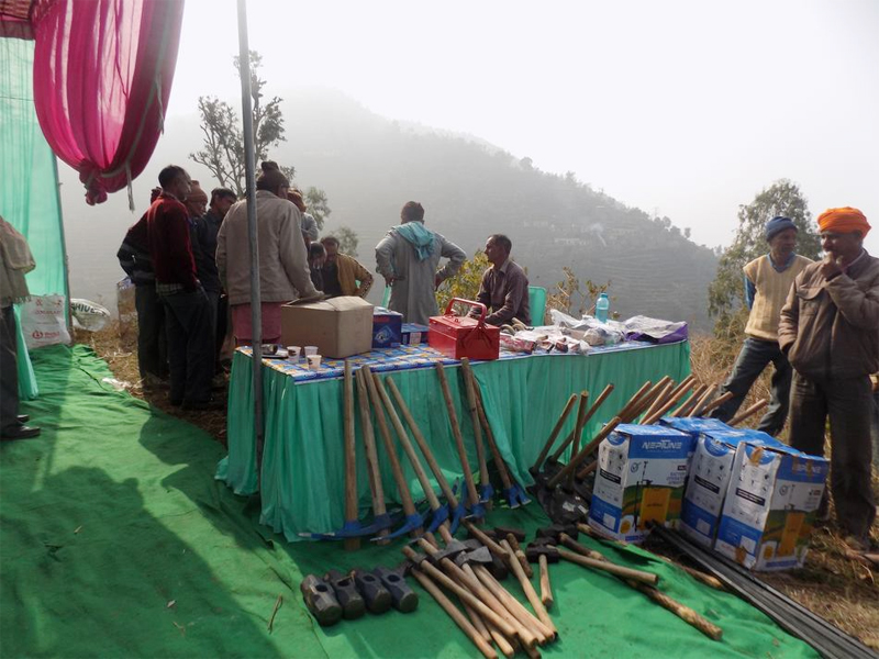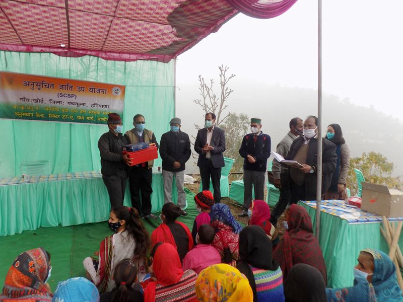 Dr. Yadav appreciated the work done by the scientist and technical staff of Chandigarh center specially water conveyance from around 2 km distance for drinking and irrigation purposes and advised the farmers of the village to discuss their agriculture and soil and water conservation related problems with the scientist so that it can be resolved within the budget availability in the scheme. On the occasion, the Director, Chief Administrative Officer and Head of Center distributed the tool kits and small agriculture implements to the famers of Khoi Village. During the program COVID guidelines were followed and all participants were provided with face masks and hands were sanitized before entry in the training program site.