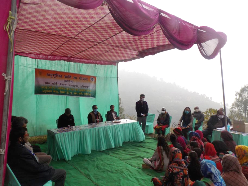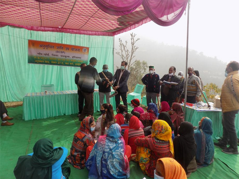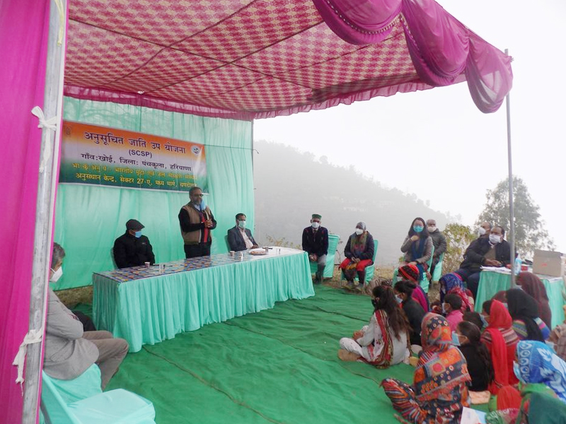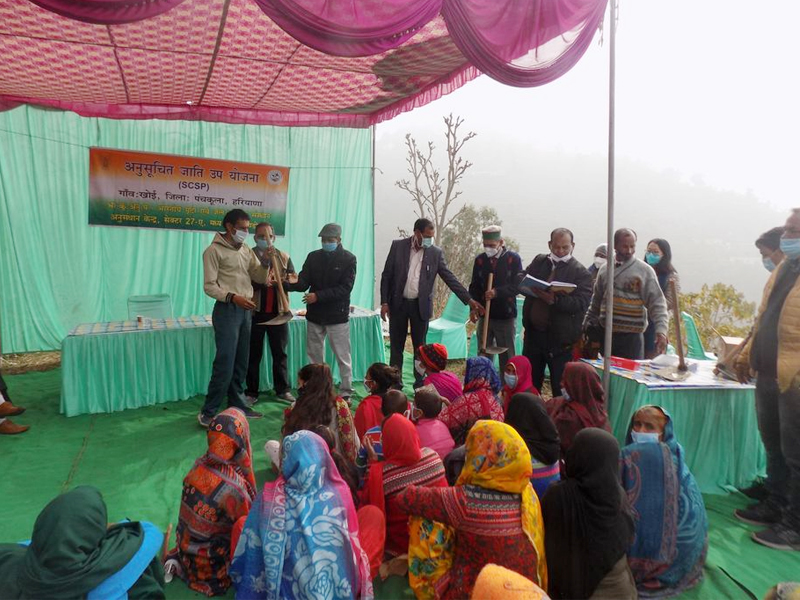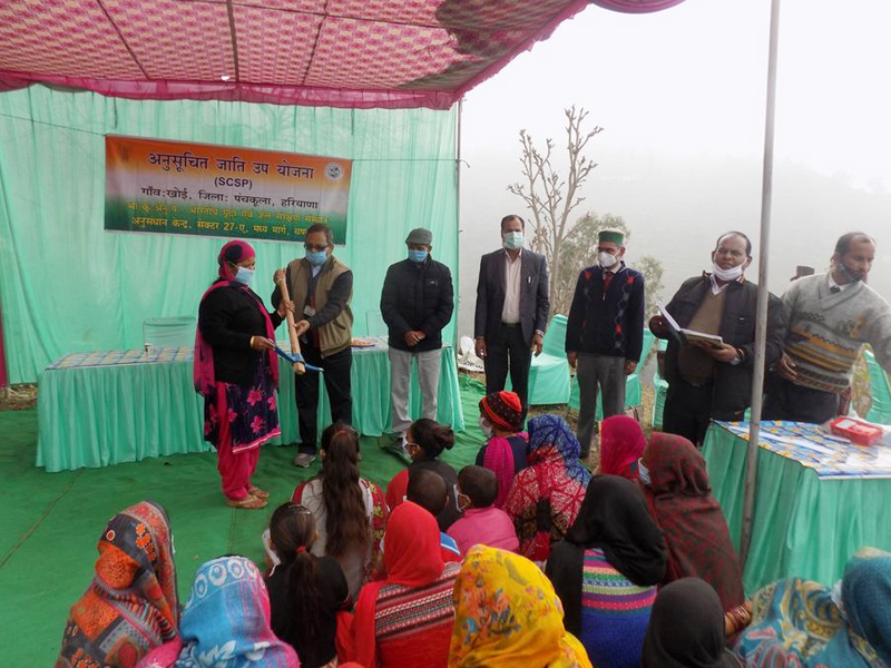 One day training program on “Soil and Water Conservation Technologies for Natural Resource Management” was organized on 24th January, 2021 under Government of India's Scheduled Caste Sub Plan at Village Khoi, District Panchkula, Haryana. Village Khoi is 100 per cent Scheduled Cast dominated village and hence the village has been adopted by the Chandigarh center under SCSP program. The training program started at 11:00 am with the registration of farmers of Khoi village.